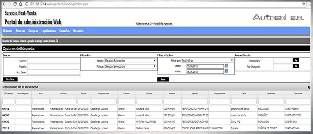 En el portal vamos a “ORDENES” y “Buscador de trabajos”, luego pulsamos en “BUSCAR” en el medio y aparecen todos los trabajos según los filtros empleados.