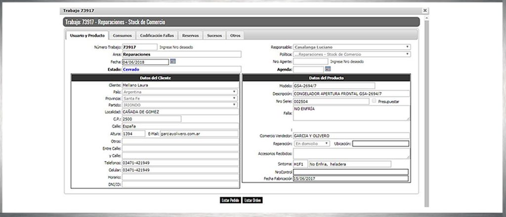 Ahora falta cargar la tarifa, colocar la falla y cerrar el trabajo: