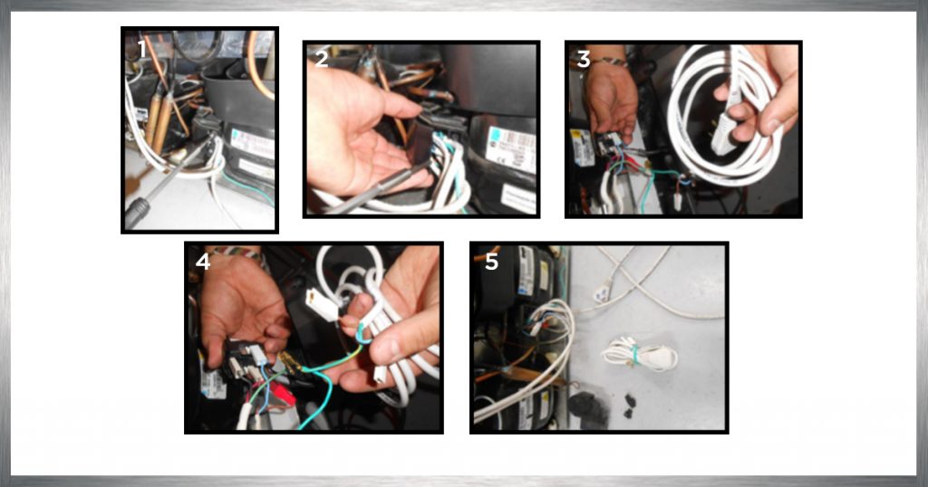 2. Sacar la tapa de la bornera. En los modelos nuevos se encuentra en el compresor, en los viejos se encuentra adosado al gabinete. (Fig. 2)