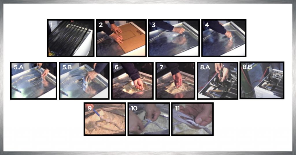 16. Se corta un cartón igual al material que se usa en las espaldas de las heladeras para cubrir la zona que se trabaja y se lo fija con una cinta metálica en un borde. (Fig. 17)