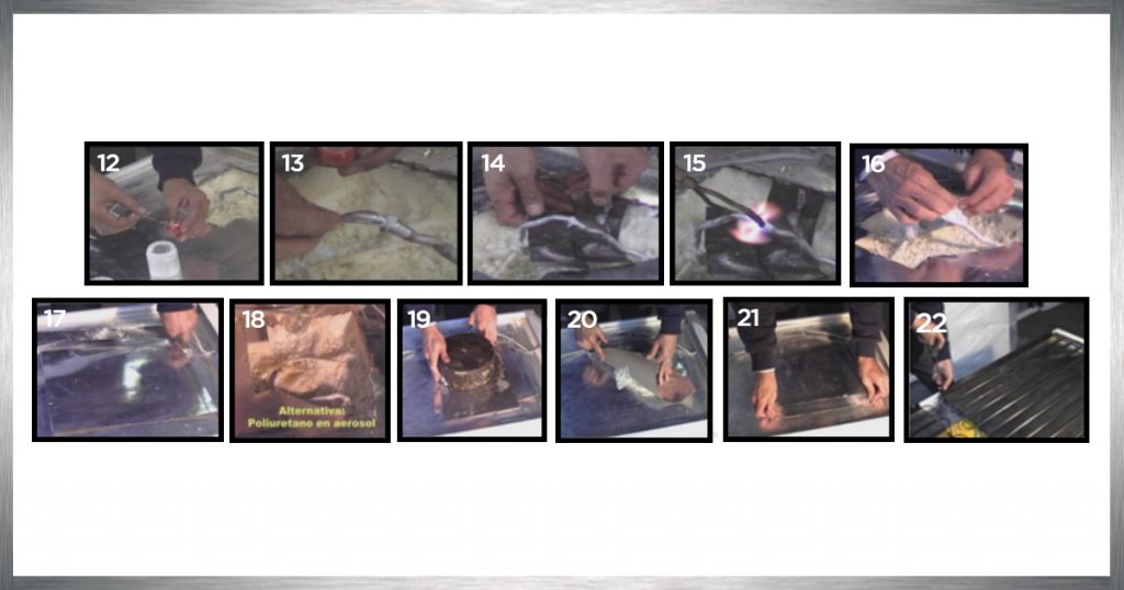 15. Una vez que se enfría se recubre el caño con material que lo aísle del poliuretano.(Fig. 16)