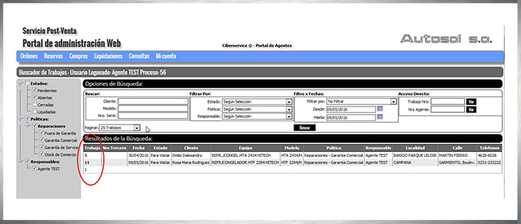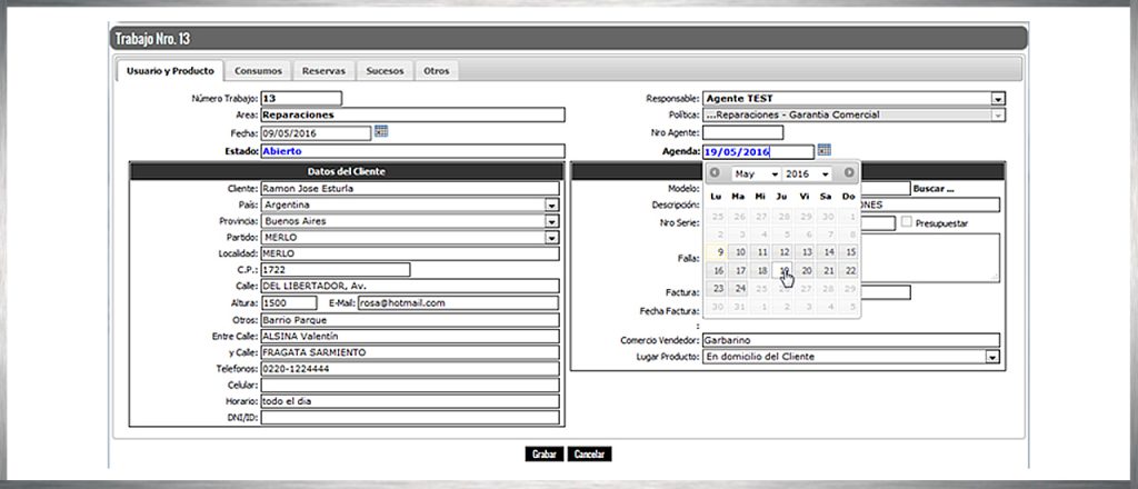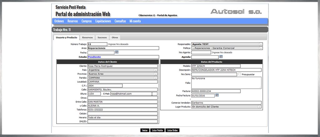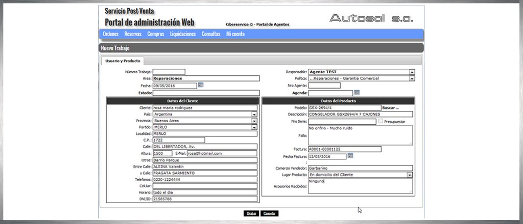 – Estos mismos datos serán los que deba ingresar cuando el usuario se contacte directamente con usted. Al ingresar estos datos, el sistema le asignará un nuevo número de caso, con el que podrá solicitar repuestos, informar la finalización del trabajo y luego solicitar el pago de sus servicios.