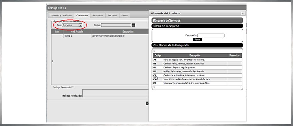 Una vez seleccionada la tarifa, deberá ingresar una descripción breve del trabajo realizado y dar por finalizada la reparación, tildando la opción “trabajo terminado”.