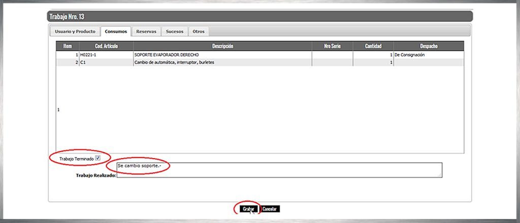 Una vez que Autosal haya despachado los materiales solicitados, podrá ver que los mismos ingresan a la hoja “consumos”. Esta hoja representa los materiales y servicios consumidos para poder finalizar la reparación.-