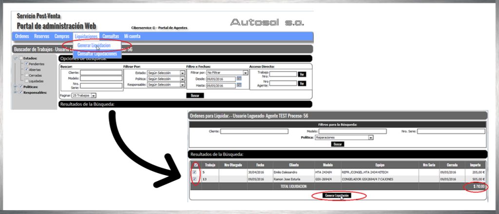 Una vez que presione el botón “generar liquidación”, el sistema asignará un número de liquidación y los trabajos incluidos no podrán volver a incluir en otra liquidación.