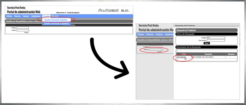 El portal le permitirá consultar información acerca de cada producto de nuestro catálogo. Para esto podrá utilizar la opción “consultar información de modelos” en la opción “consultas” del menú general de opciones.